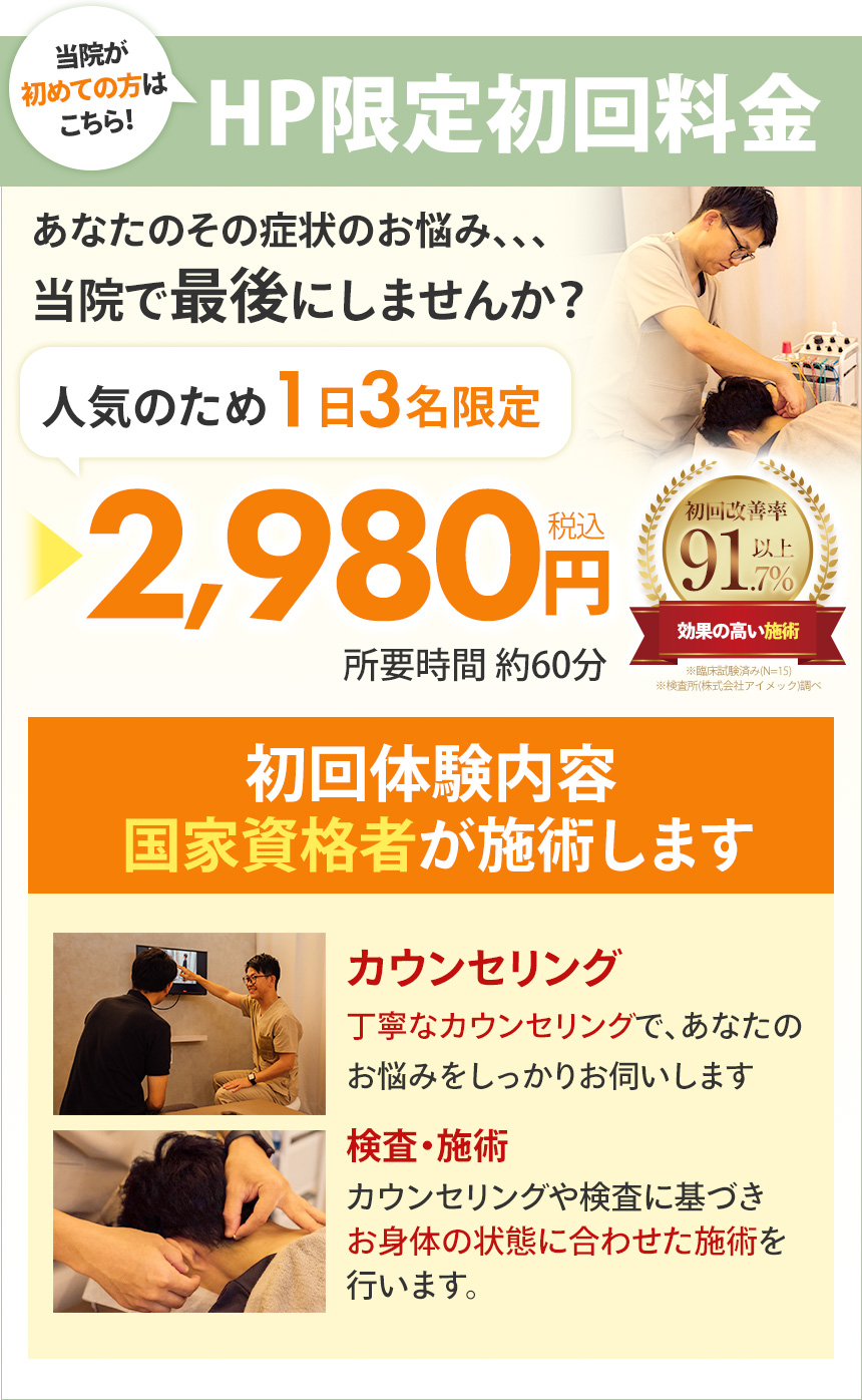 当院では施術後の再発予防やセルフケアのアドバイスも行い、施術だけでなく日常生活からサポート。